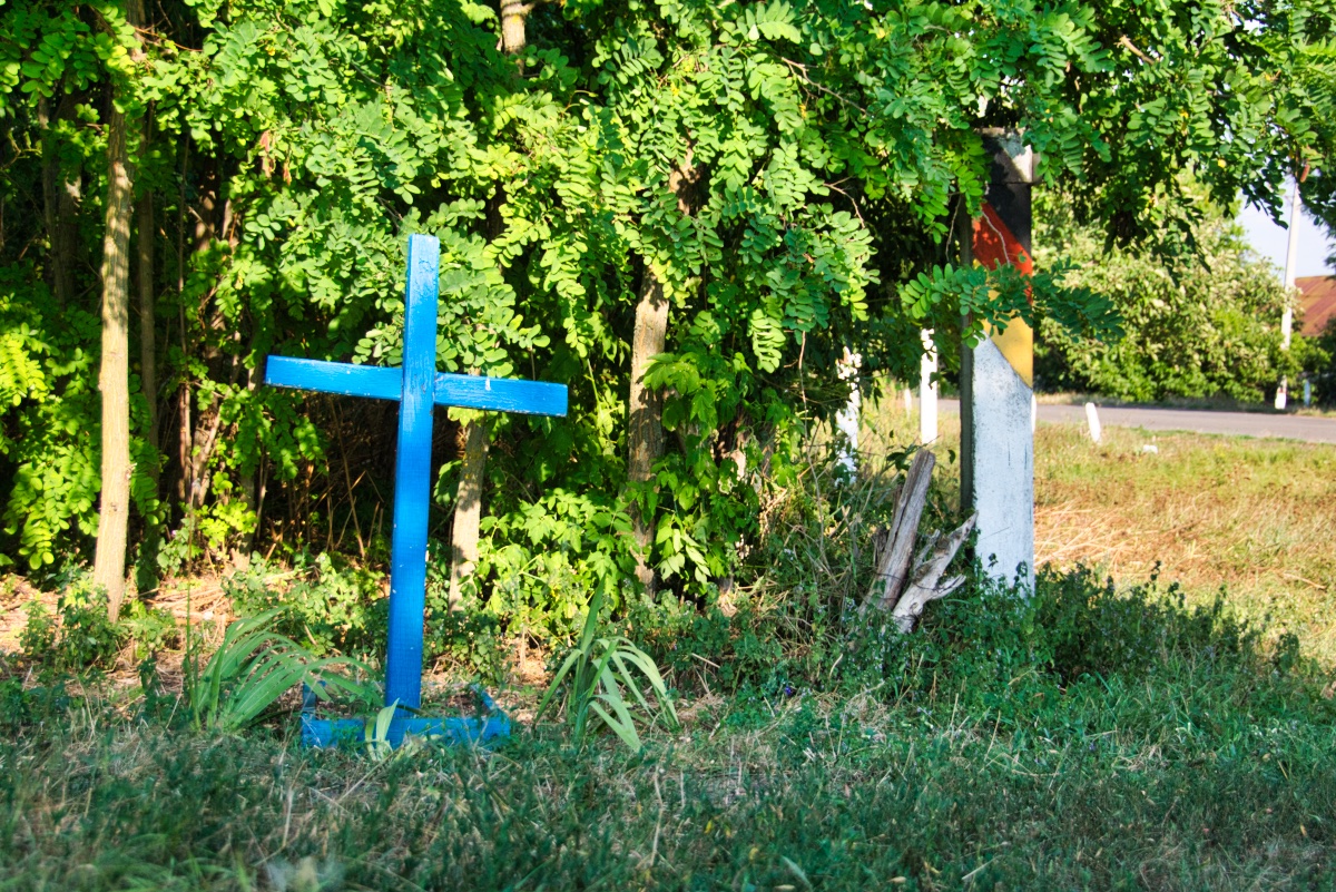 memorial to a fallen German soldier — locals found the body and decided to give it a proper Christian burial — Freudian slip or innocent act of compassion? (Ukraine, Summer ’19)