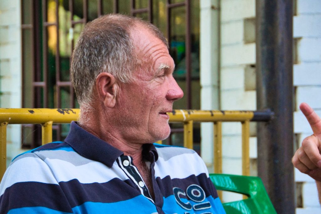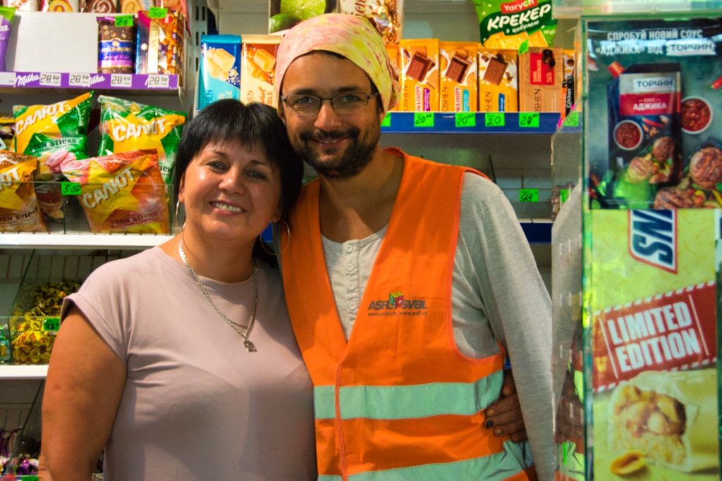 Sasha and his wife Tania (who didn’t want to be on the photo) gave us much appreciated cold water from their fridge (Bilhorod-Dnistrovs’kyi district)