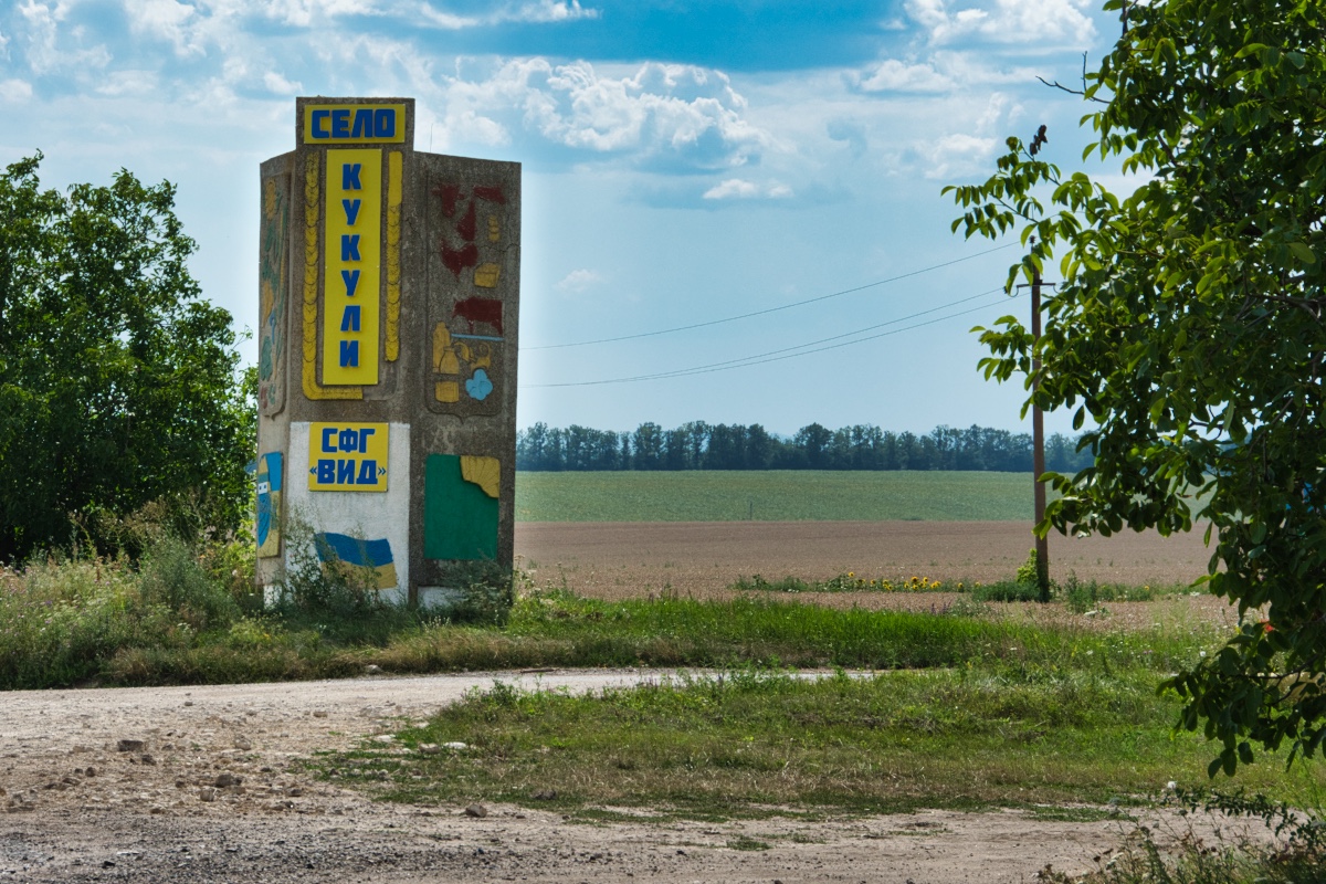 The exit to the “Territorial Community of Ivonivka” was more visibly marked. “Territorial communities” are a recent development in Ukraine — small communities within a district may now amalgamate and organize to elect a local council and mayor to manage their own budget. (Ivonivka)