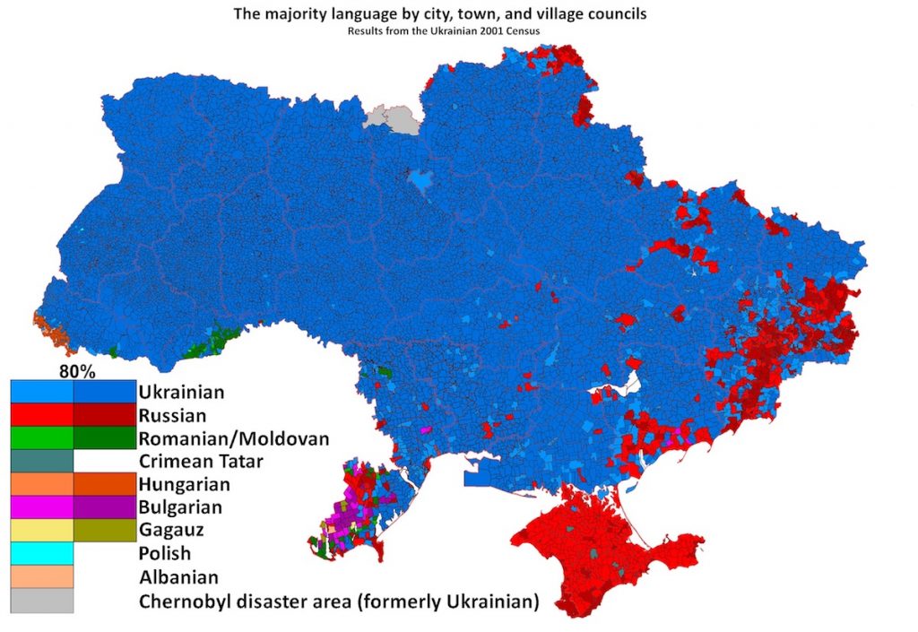 Consistent with what to statistically expect from the language distribution map, Sasha and his family spoke Ukrainian — “As your first language?” — “Yes” — “And do you know anybody here whose mother tongue is not Ukrainian or Russian?” — “Not really, we’re all Ukrainian around here.”