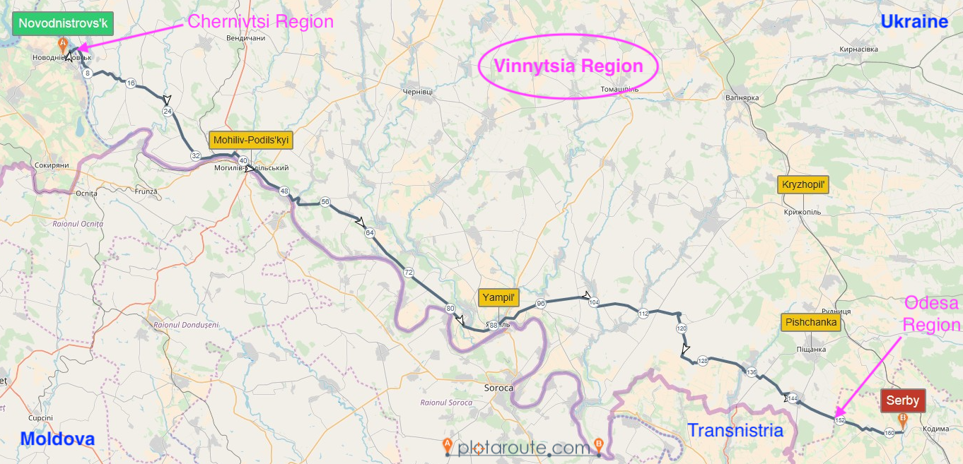 We passed by four districts — Mohiliv-Podil’s’kyi, Yampil’, Kryzhopil’ and Pishchanka.