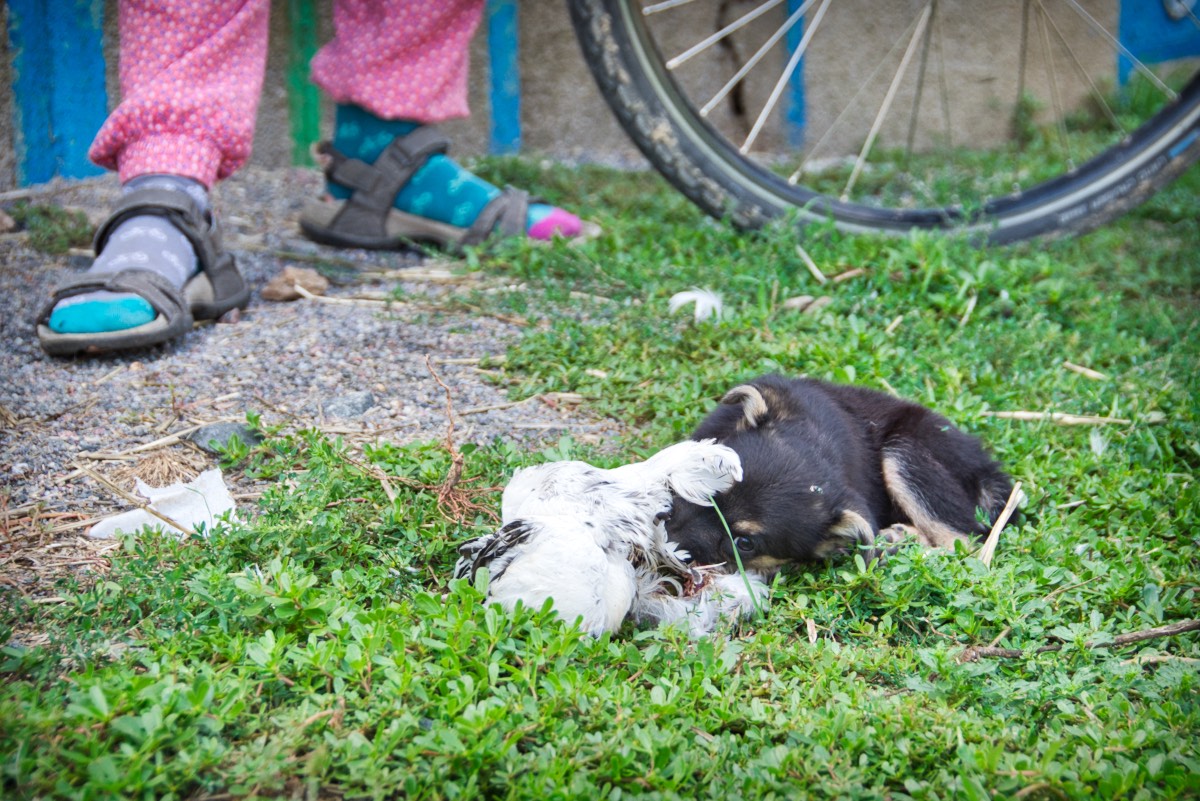 . . . the first well in the region was great — bam! It appeared after 10 or 15 endless kilometers under smoldering sun along a trippy, straight, dry, dusty dirt road that felt like the purgatory. Besides cool water and a shade in which to enjoy it, we were further redeemed by a meal of corn on the cob, and enough raspberries for another meal later on that day (when we added cottage cheese and honey to them) — courtesy of some Ol‘a, whose smile might as well have been Mother Mary’s at the gates of heaven. Ol’a reminded me of my grandmother . . .
